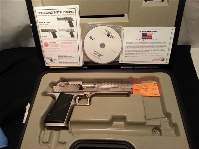 Magnum Research Desert Eagle .50AE in Bright Chrome Finish with all Original Case, Manual with CD.