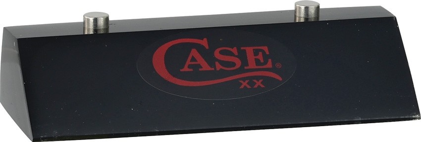 Dimensions: 3.63" x 1.25" x 0.75". Display only. Knife not included. Black and red. Will hold one traditional folding knife. Boxed.