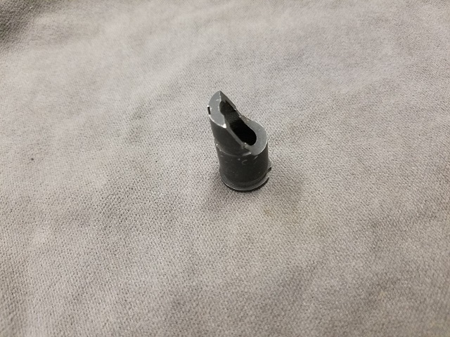 OEM AK47 type Slanted muzzle brake. Threaded in 14x 1 LH Threads with detent locking notch.