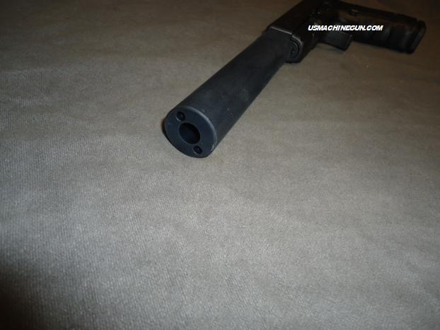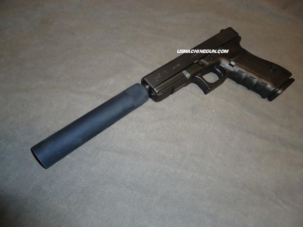 This machined and knurled fake suppressor looks and has the weight of the real thing without the high cost and tax stamp. Nearly 5.75 inches long, threaded .578 x 28 (37/64-28), machined in high quality aluminum, with a knurled outer grip at the base and finished in a new flat/matte black finish that matches most semi auto pistols and most real suppressors. Adds a tactical look to any .45 ACP pistol with a .578 X 28 thread. 6" in length and a diameter of about 1.15", weighs about 7.5 ounces. (gun & other components sold separately) Coating is Flat black