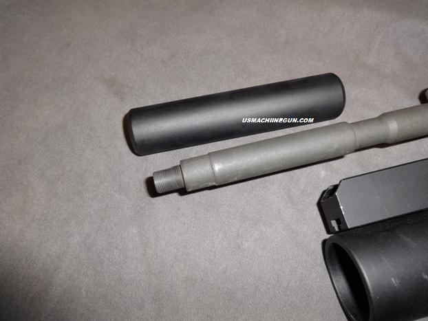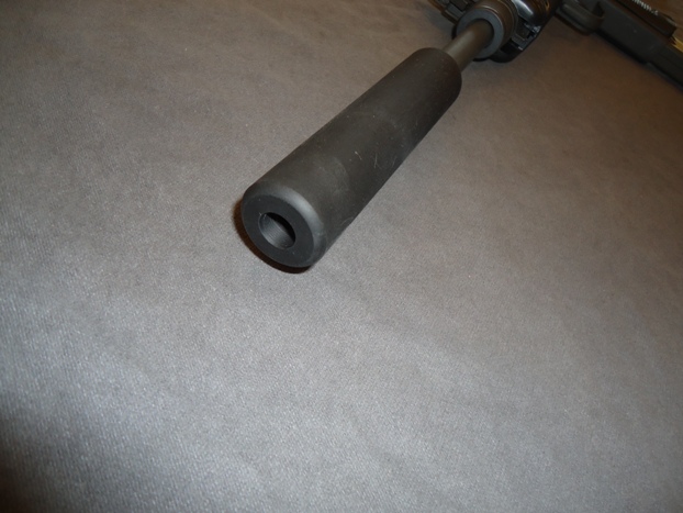 This ultra light weight (SBR) "Short Barreled Rifle" (slide over) tactical fake suppressor is a great finish for any custom AK-47. If you want the look of a short barrel and a suppressor but don't want to add length to your gun or live in a state where an extension of the barrel is not allowed, this is for you! They are a bit smaller and shorter than our Stealth Fake SBR Suppressor and fit better if you have a long bayonet lug. It is 1.25" in diameter, and 5.75" long. They have a precisely threaded end cap, a thread of 14X1 LH on one end and finished in a protective matte black finish. Your 16" or longer standard AK barrel slides in and threads inside the opposite end. Fits over barrels of .74" thick or smaller, weighs about 7 oz. (gun & other parts sold separately)
