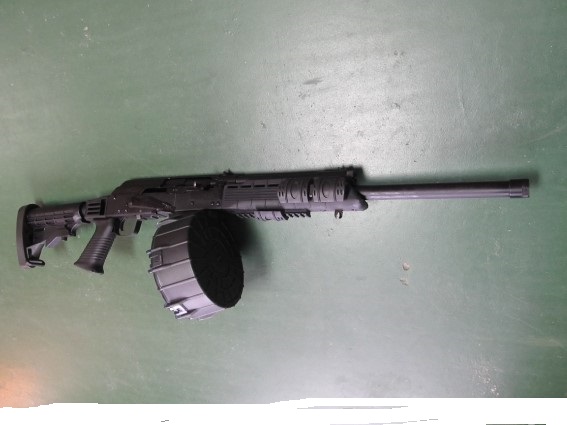 SAIGA 12 GAUGE IZHMASH CUSTOM AK47 SHOTGUN WITH DRUM. Semi auto 12 gauge Izhmash imported by US Sporting Goods Rockledge Fl. Includes a Pro Mag 20 round drum. Gun was tested with less than 20 rounds. Near new condition. Includes Tapco rear stock set up. $45. shipped where allowed by law to your FFL. Don't hesitate, these are getting difficult to find.