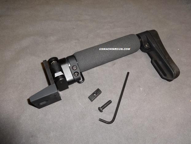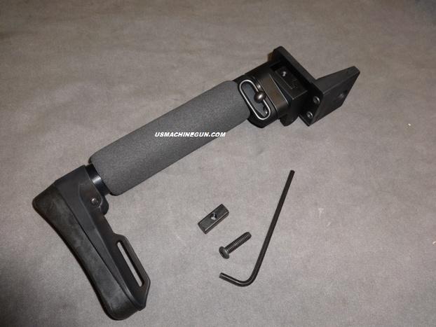 This streamlined, lite modular stock includes a thin folding adapter, our flat mount stock adapter, a steel internal threaded block, bolt & Allen wrench for the MAC-10.45 acp/9MM SMG. Offers a sleek, slim design with a padded buffer tube for cheek weld comfort and a molded rubber butt pad for additional recoil absorption. Stock can be folded to the left or right, we build it to fold on the left. End to end, stock and adapter measures about 9.5". Fits MAC-10.45 acp/9MM SMG ONLY. Easy installation. (gun and other accessories sold separately)