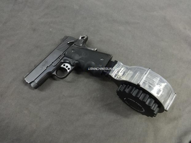 28 round drum for .45 ACP 1911 style pistols. easy to wind and reload. fits most 1911 style semi auto pistols.(.45 acp pistol not included)