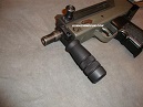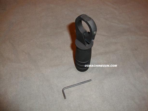 This newly designed solid billet tactical grip is the perfect replacement for the standard strap. Our new design offers a tactical forearm position giving the shooter more control under rapid fire and increased target acquisition. It is hard coat anodized and well constructed from top to bottom in a one piece design with a knurled textured grip. In a FLAT/MATTE anodized black finish, it works with stock uppers and most after market uppers as well. Its thin design allows the entire barrel thread for most suppressors and muzzle breaks and is flush to the exterior barrel base. Easy installation with a clamp design for strength and a set screw for a tight fit. Allen wrench included. Fits standard 7/8x9 & 3/4 x 10 threaded barrels for Mac-10, MPA .45 acp & Vulcan .45 acp series. Please call if you have any questions. NFA rules apply, Addition of this item to a semi auto gun may require additional paperwork to be filed with the ATF, check with your local dealers. (gun and other components sold separately)