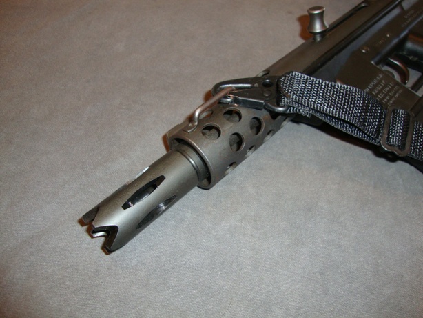 Our new crowned muzzle brake for the Tec 9 & KG-99 is made of machined steel and finished in black oxide for durability. It has five machined, slotted ports and its' crown works great for door breach situations, self defense and adds a custom appearance to any Tec 9 or KG 99 gun. It is 3" inches in length and weighs only 5 ounces. It has a thread of 3/4x10 OS. (gun & other parts sold separately.