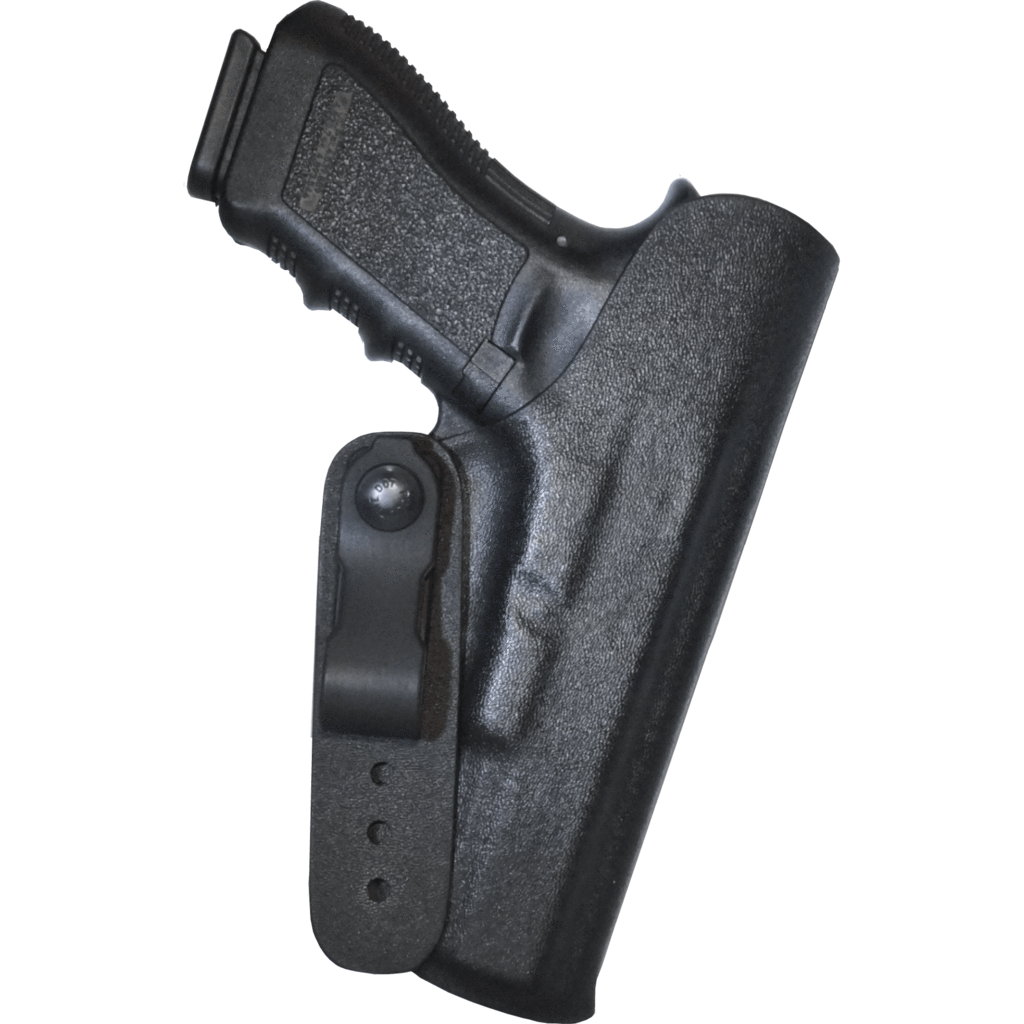 The dual pivoting pendulum allows the shooter to withdraw the holster from the pants completely which still leaving the holster physically attached the pants. This makes wear for the shooter easier, as you may remove the holstered firearm while sitting for long periods, while the holster is still attached to the belt. Once your firearm is secured back in the holster this dual pivoting pendulum will swing back into the waistband. This gives you peace of mind knowing the trigger is protected before re-entering your waistband.